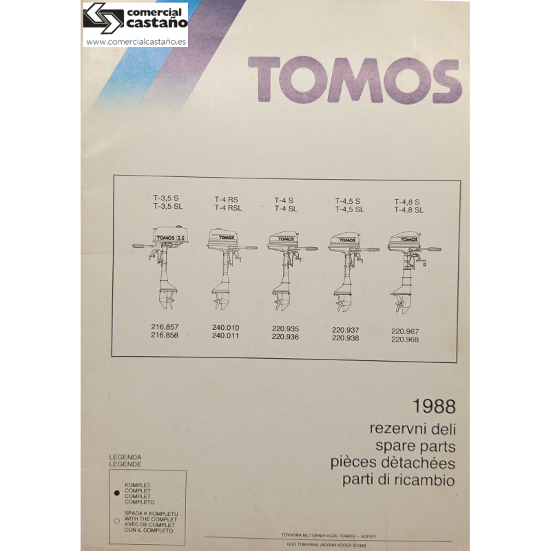Despiece usado fueraborda Tomos T 3.5 - T 4 - T 4,5 - T 4,8